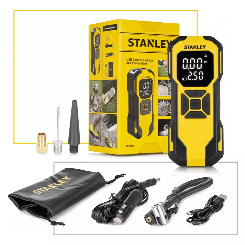 Dụng cụ đa năng bơm xe – đèn pin LED – sạc dự phòng Stanley SXIF0101: Giải pháp 3-trong-1 cho mọi chuyến đi
